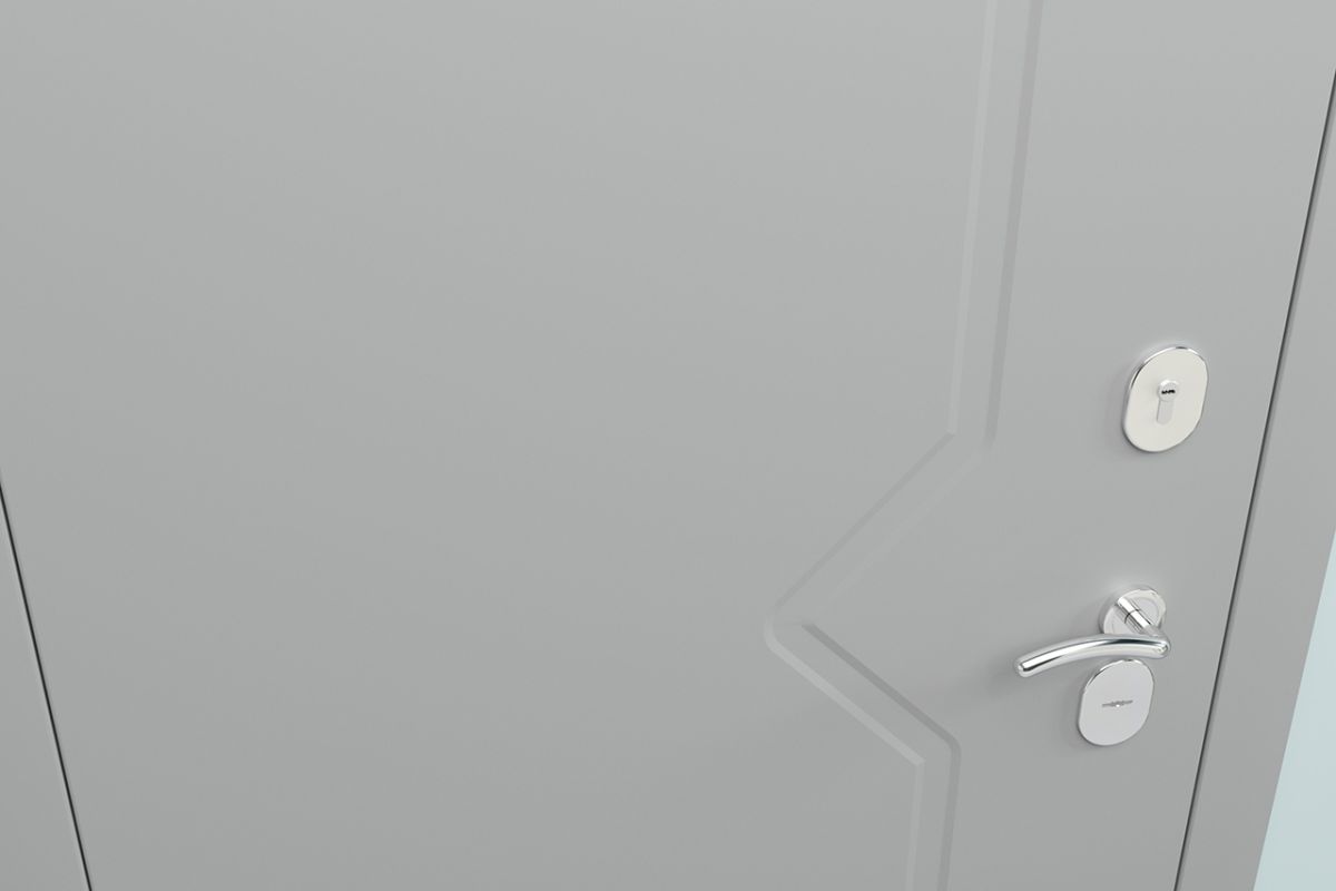 Отделка сдержана и универсальна, отличается четкими и строгими формами. Применяется как на дверях многоквартирных домов, так и на входных дверях с терморазрывом, устанавливаемых на границе улица-теплое помещение.