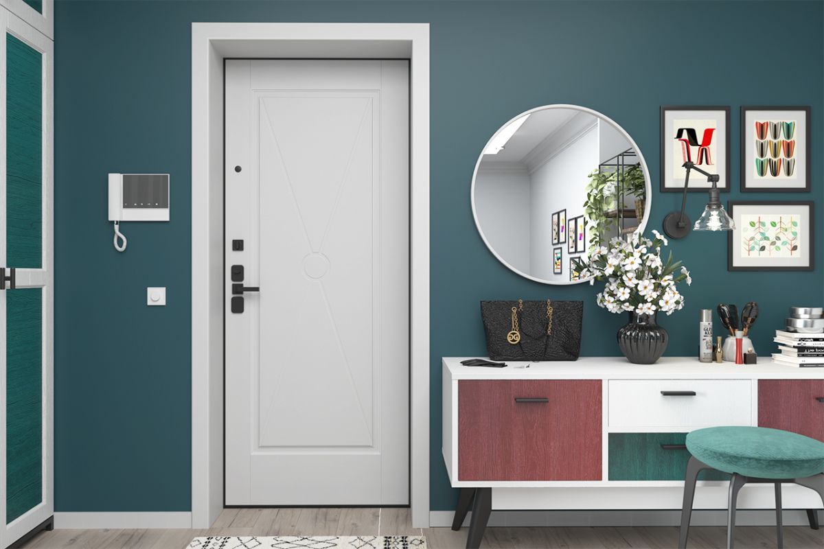 Даже небольшие прихожие при грамотном выборе оттенков входной двери, мебели, светильников и текстиля могут создавать иллюзию наполненности светом и воздухом.