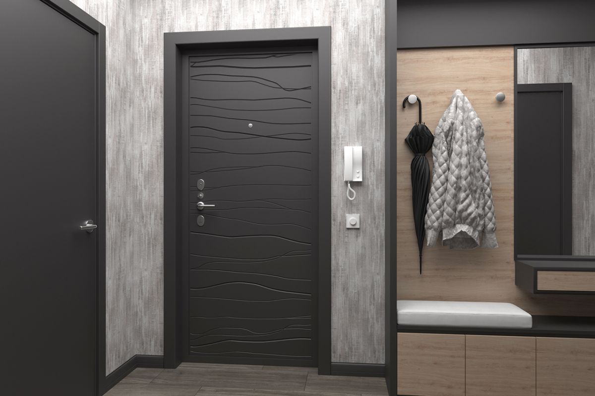 —Входная дверь Гардиан в интерьере с отделкой 16 Дюны К 01