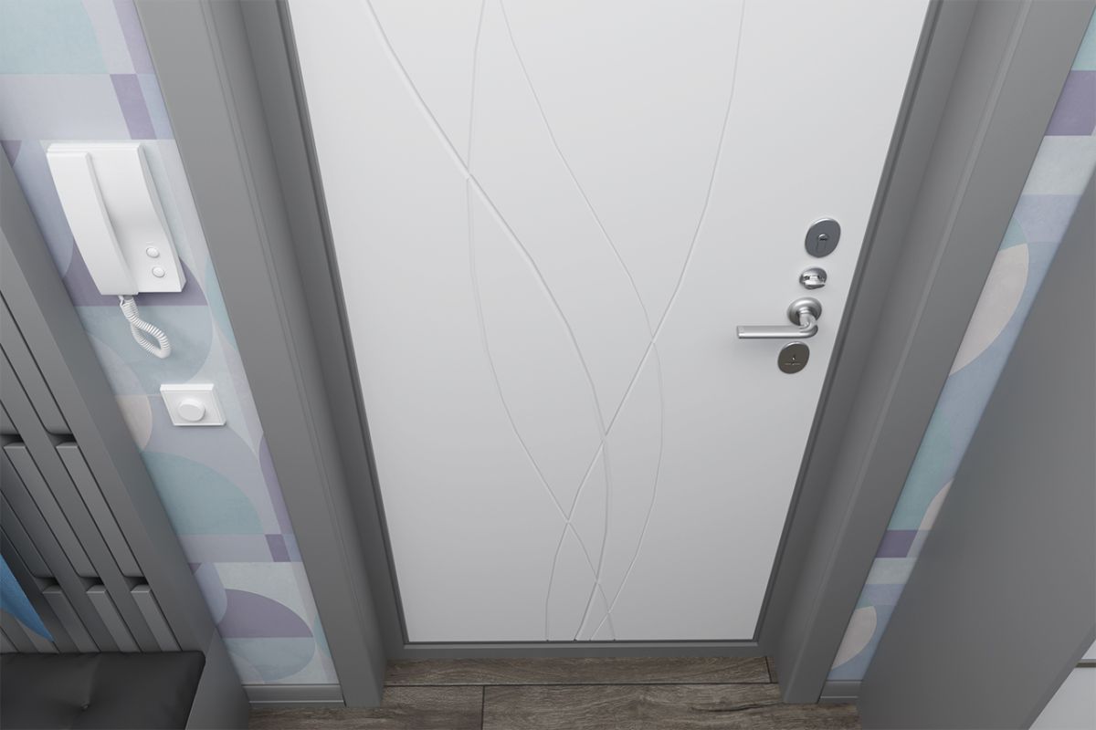 Входная дверь Гардиан в интерьере с отделкой 16 Дюны Л 03