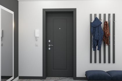 Оформление входной группы необходимо завершить декоративными элементами, состоящими из наличников и доборного бруса, которые будут соответствовать цвету выбранной отделки.