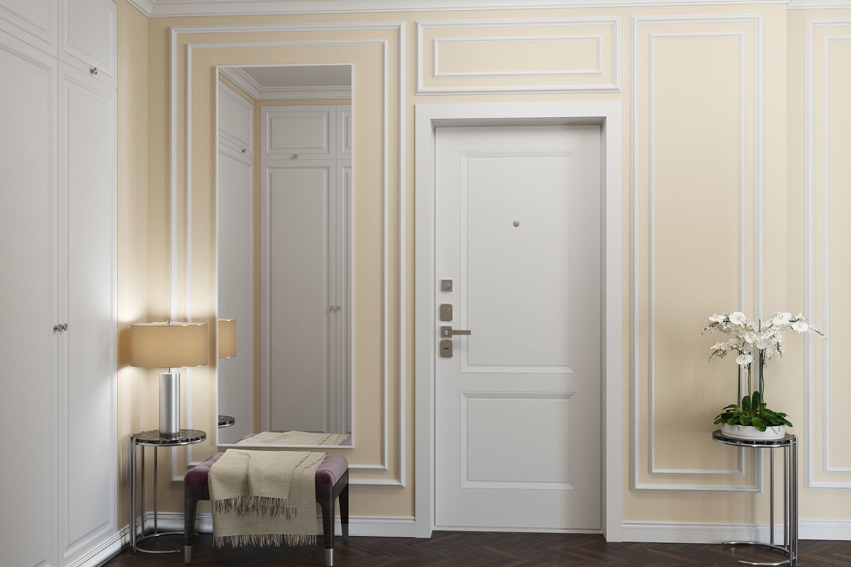 Входные двери для интерьеров, выполненных в классическом и неоклассическом стилях в последнее время приобрели новые черты, избавились от тяжелых украшений и стали более лаконичными. Но неизменным в них остаются филенки строгих и правильных линий, которые точно вписываются в стилистическое оформление современного помещения.
