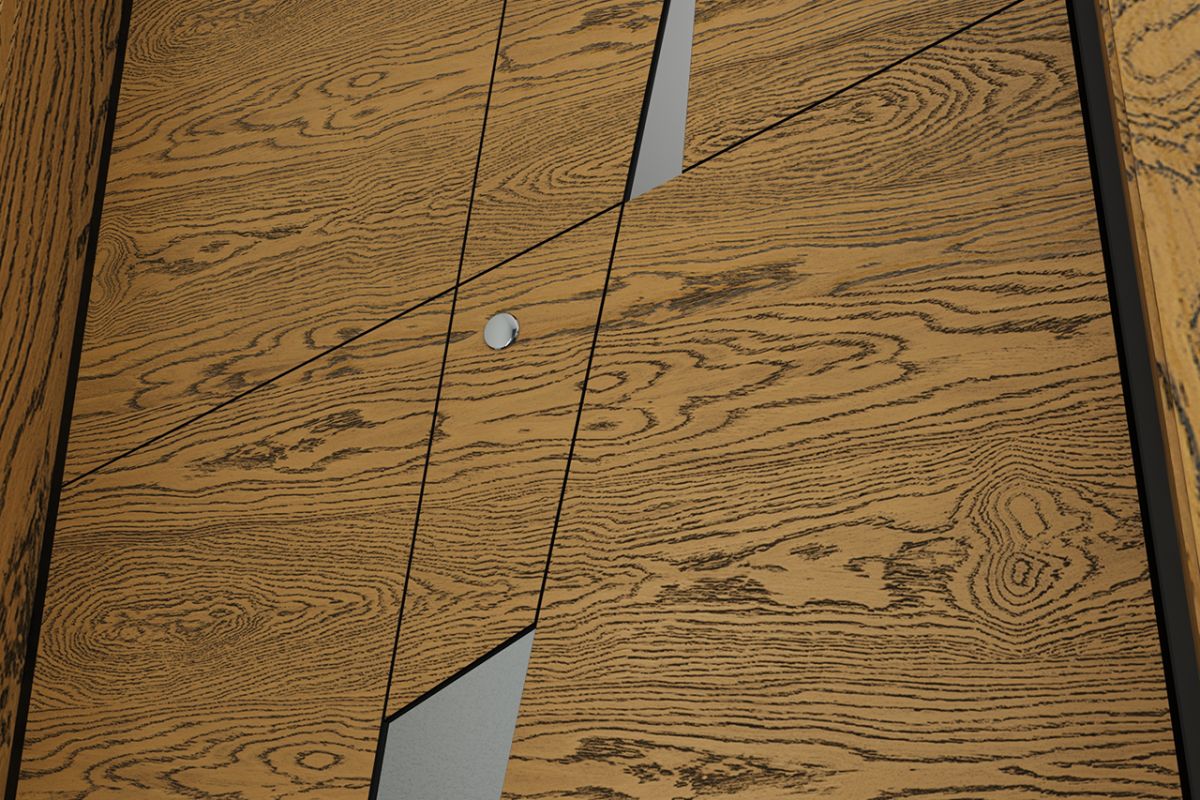 Для входной двери Гардиан с декоративной панелью «Призма» мы предлагаем широкую цветовую гамму популярных тонировок. Обращаем Ваше внимание, для того, чтобы подчеркнуть рисунок шпона мы применяем метод патинирования. Для этого, поры древесины заполняются специальным пигментом – патиной, контрастной по цвету основному тону покрытия.