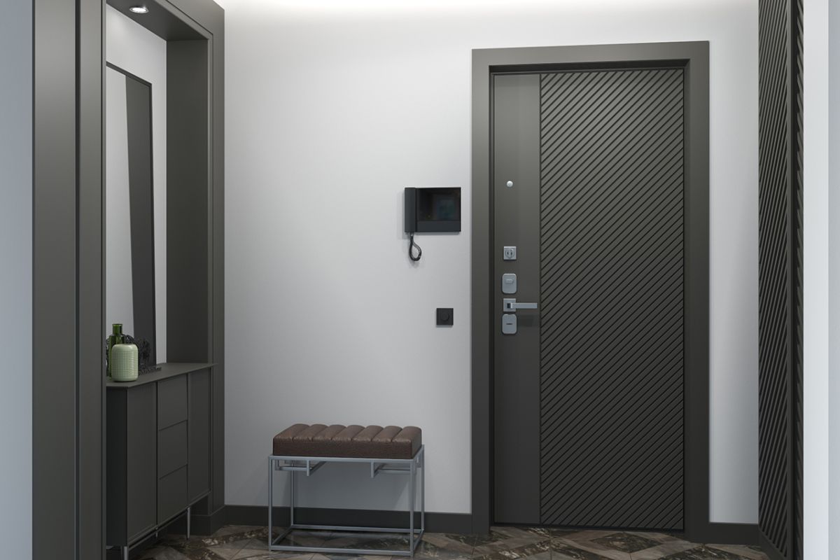 —Входная дверь Гардиан в интерьере с отделкой 16 Техно 01