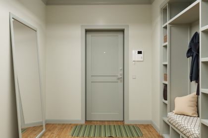 Входная дверь для такого помещения может быть окрашена по каталогу RAL, в том числе и в один из оттенков, входящих в палитру «Цвета времени», которые актуальны всегда.