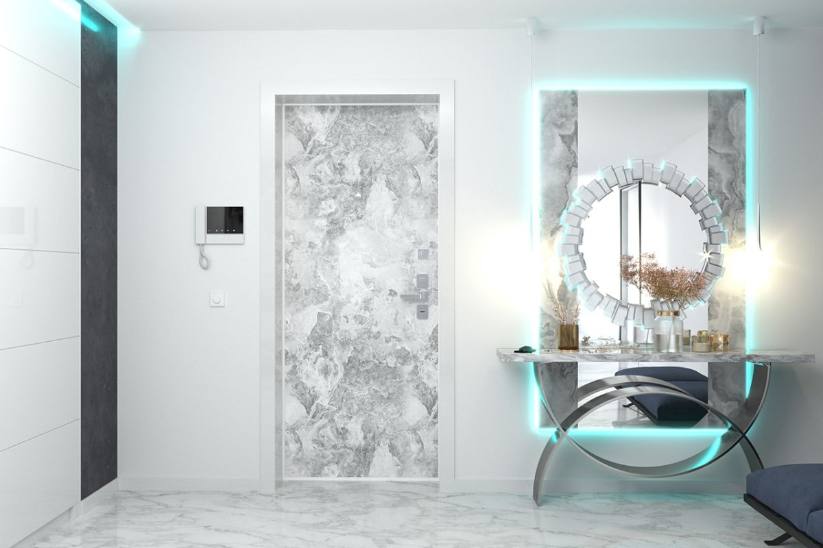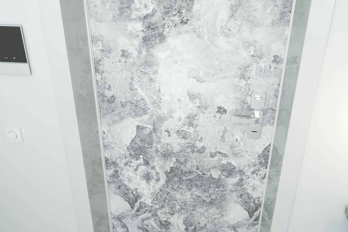 Отделка ФЛ 00 выполненная в популярном цвете «дымчатый мрамор», задает стиль помещению и гармонично сочетается с другими деталями интерьера.