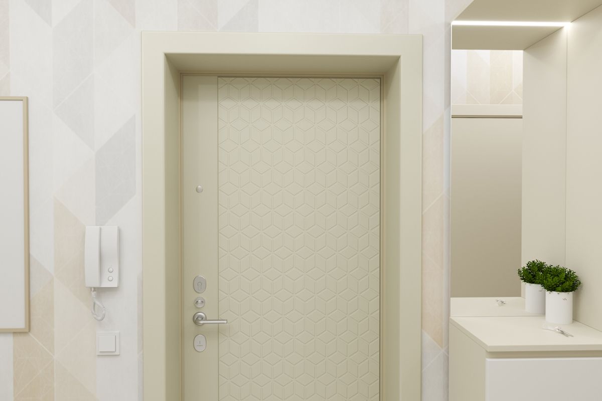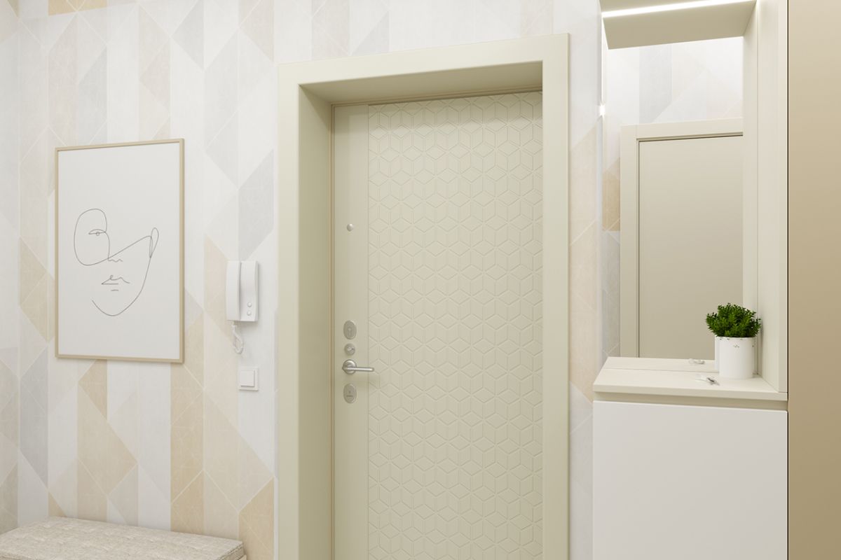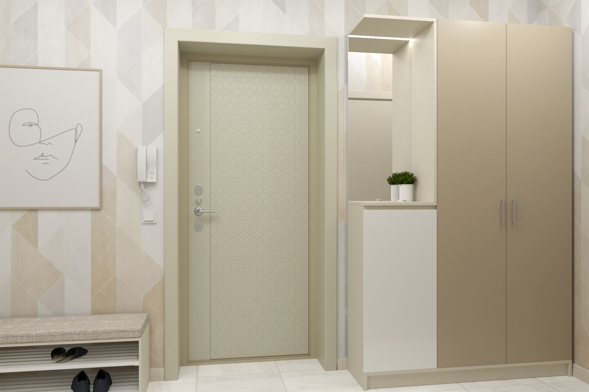 —Входная дверь Гардиан в интерьере с отделкой Мистраль 01 Л 14