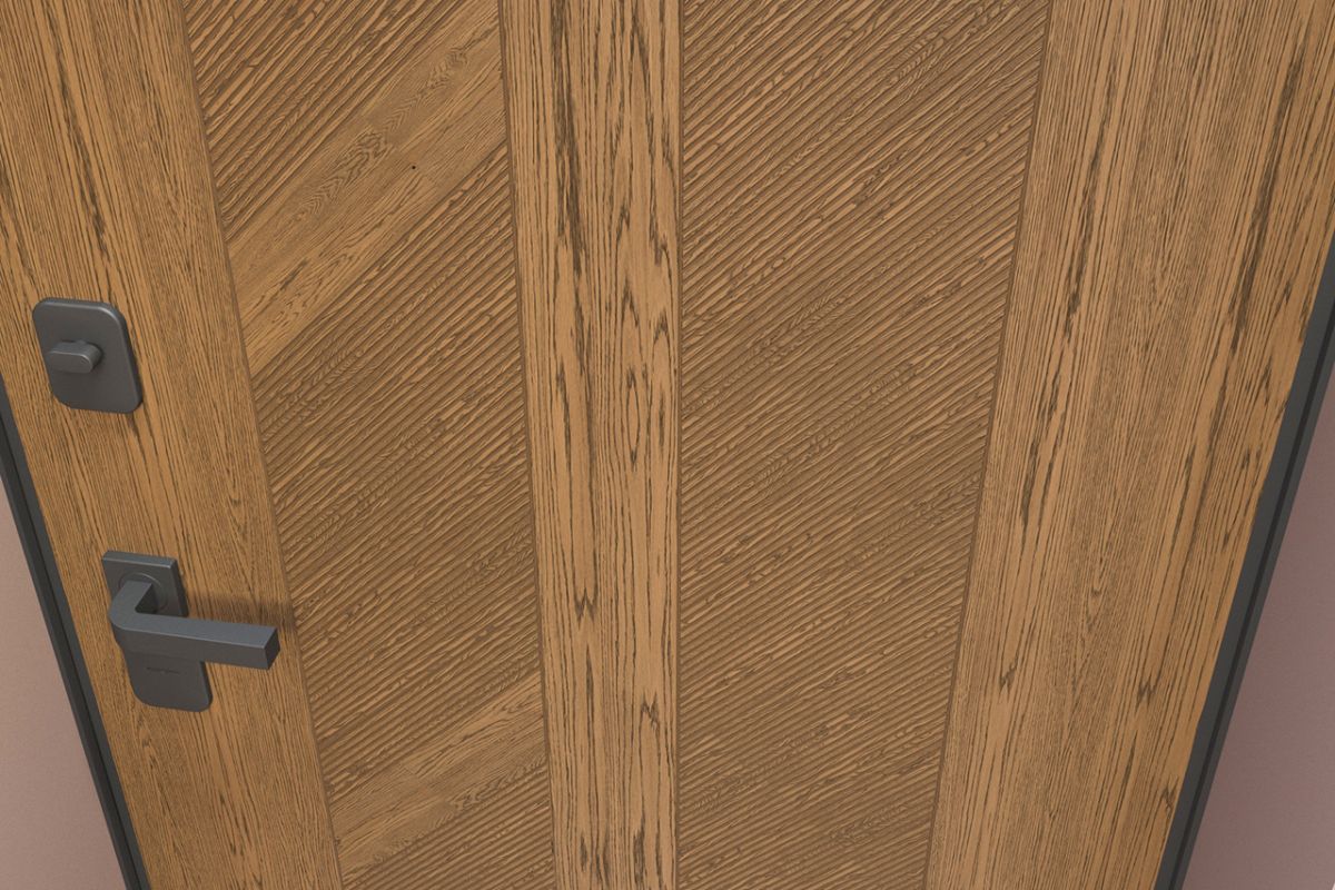 Неповторимость текстуры шпона дуба панели «Вайя» в сочетании с ассиметричным фрезерованным рисунком, придает помещению высокую эстетическую ценность.