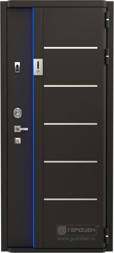 С объемным металлическим элементом, молдингом и синей подсветкой